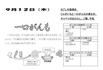 本日の給食 9月12日(水)