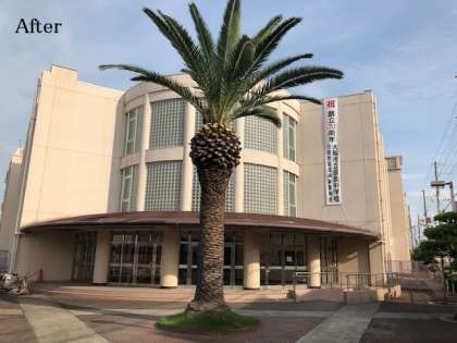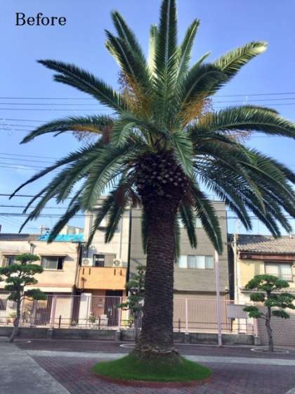 正門前のフェニックスを管理作業員の方が、剪定してくれました。