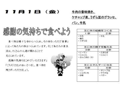 本日の給食 11月1日(金)