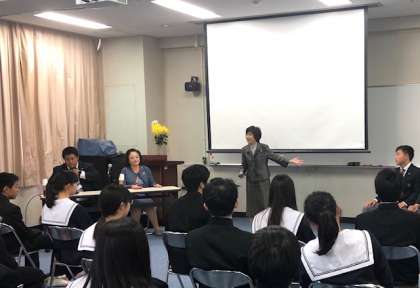 3年生は、興國高校の校長先生、先生、生徒にきていただき、出前授業で面接指導をしていただきました。