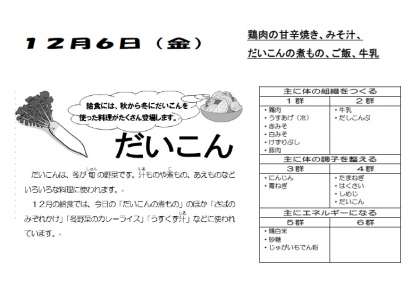 今日の給食 12月6日(金)