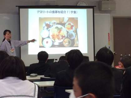 スポーツドリンクには糖分がたくさん入っていることやアスリートの食事を紹介していただきました。