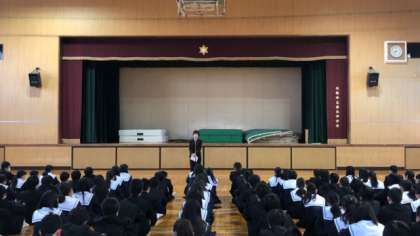 今日は全校集会で、それぞれの道で頑張っている25歳の卒業生が、