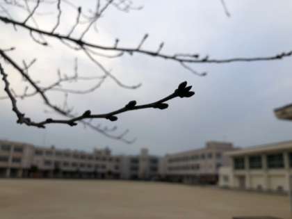 校庭では桜のつぼみが少しずつ膨らんでいます。