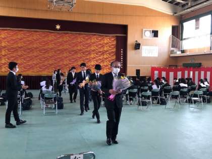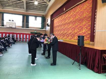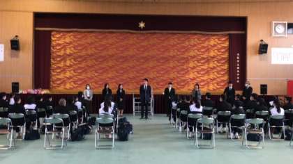 修了式の最後に、学年ごとに離任の先生方からお別れの言葉をいただきました。