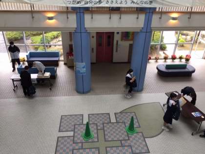 1年生のみなさんも入学式以来の登校でした。健康チェックや提出物の回収をしました。先生方の指示をしっかり聞いて、短時間で下校しました。