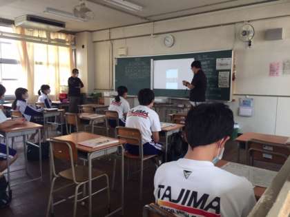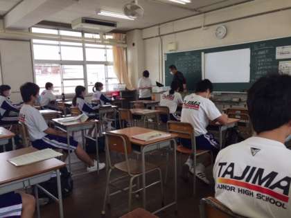 学活、課題の確認、教科担当の先生からのお話、自己紹介、誕生日の人の紹介を行いました。