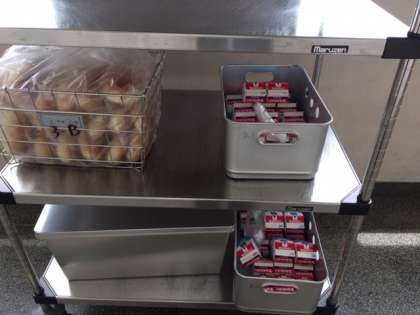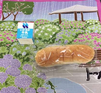 今日の給食は、「個包装のパンと牛乳」の簡易な給食です。