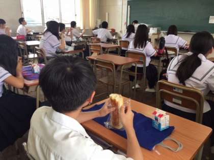 前を向いて、会話を控えての給食ですが、久々のみんなとともにの時間は楽しそうでした。