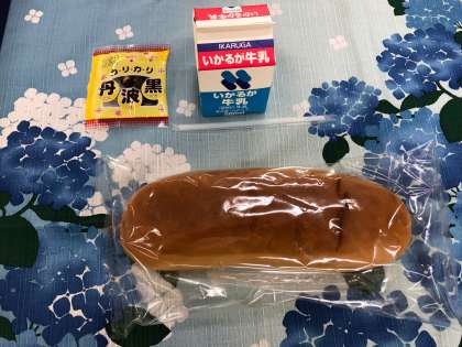 今日の給食は、「黒糖パンと牛乳と黒大豆」でした。