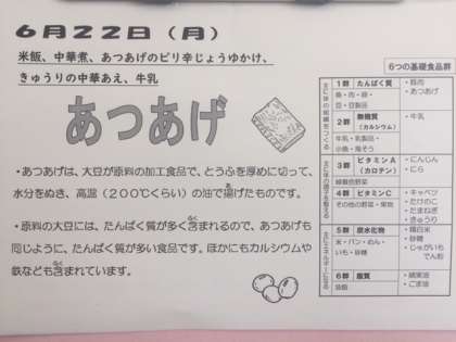 今日の「あつあげ」は味付けが甘がらく、食べやすい大きさでおいしくいただきました。