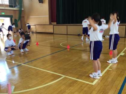 体育では、「ラジオ体操第二」を行いました。
