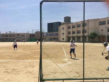 気温が上がっています。31度を超えましたが、みんな元気にソフトボールに取り組んでいます。
