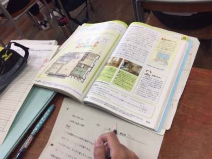 家庭科では、住まい方、生活行為と住まいの空間について学習しました。