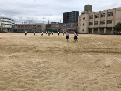 生徒たちは、仲間と一緒に楽しくボール遊びをしています。