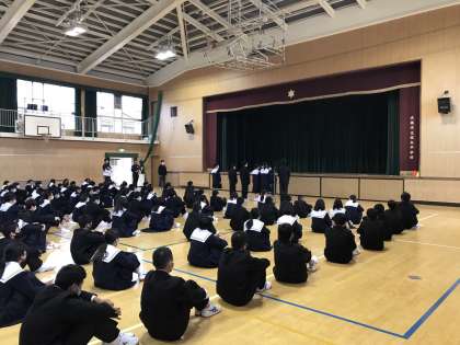 今年度、初めて全校生徒が集まって、全校集会を行いました。