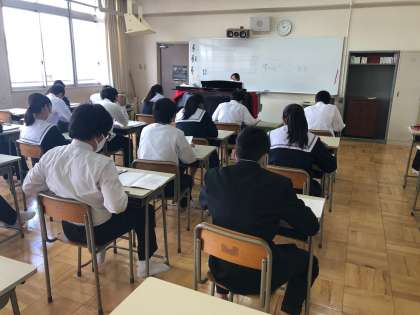 2年生の音楽では、文化祭で歌う曲の練習をしていました。今年の文化祭では、事前にビデオ撮影を行い、映像による発表になります。