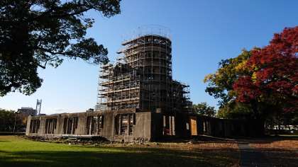 保存工事中の原爆ドームと紅葉です。