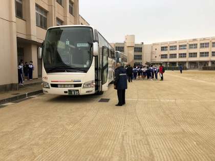 1年生は、校外学習です。出発式を行い、バスに乗って出発しました。