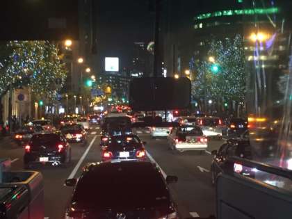 御堂筋のイルミネーションを見ながら、修学旅行の最後に「香水」を歌ってます。