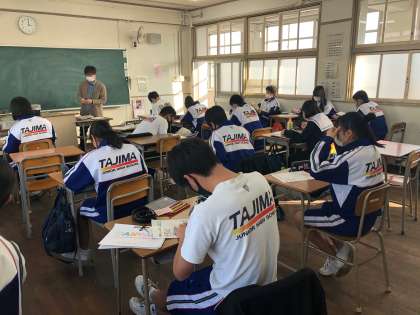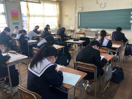 3年生は、卒業までの日めくりカレンダーの作成を行いました。受験という大きな目標も見据えながら、作成に取り組んでいました。