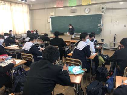 英語の授業は、チャレンジテストへ向けての対策とアクティビティプリントを作成していました。