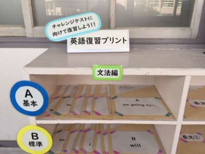 チャレンジテストに向けて、各教科の先生方が学習プリントを準備してくださっています。