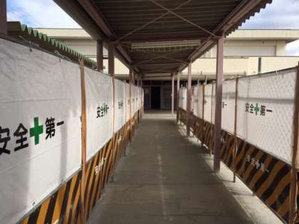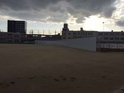 仮囲い前のグラウンドを野球部のみなさんがきれいに整地してくれています。