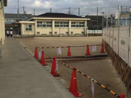 本格的な工事を始める前の準備として、体育倉庫の解体が行われました。