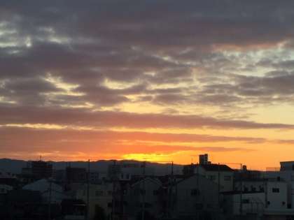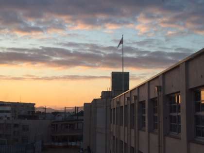 今朝はいつもより早く学校に来て、校舎を回っていると、朝焼けの風景が目に飛び込んできました。