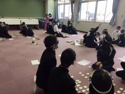 今日は、本番さながらの百人一首カルタ取りに取り組みました。