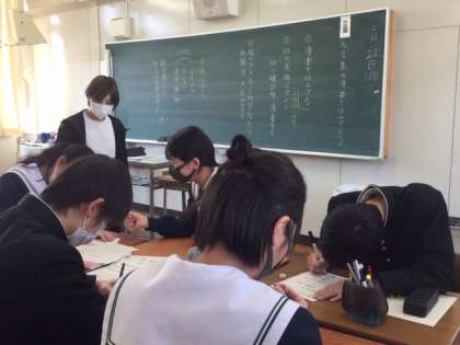 国語の授業では、「名言集〜中学校生活を振り返って〜」の学習でした。