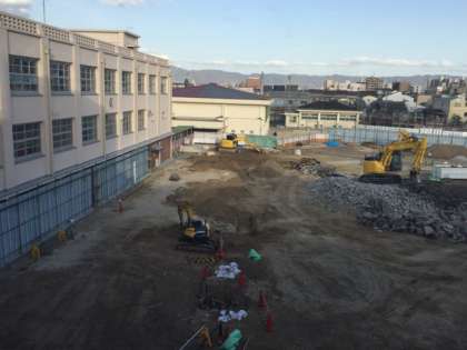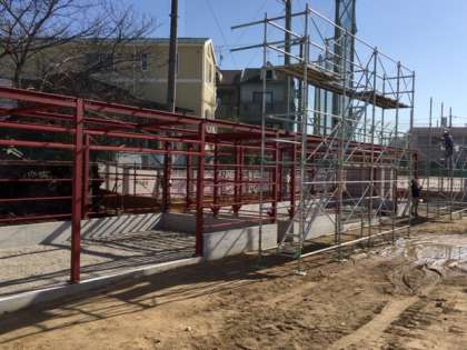 体育倉庫が出来上がれば、少しだけ運動場が広くなります。