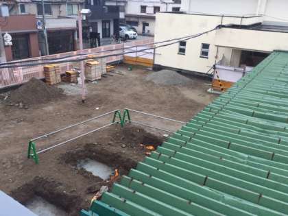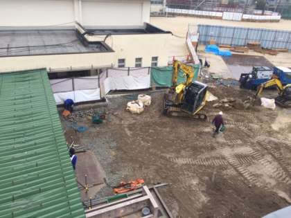 今日は雨の中でしたが、体育館前の工事が行われました。