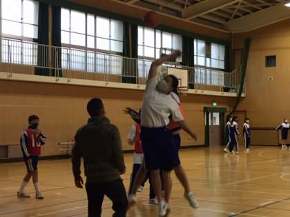 今日は雨のため、男子も女子も体育館で行いました。