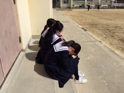 お昼休み、3年の仲良しグループが日向ぼっこです。
