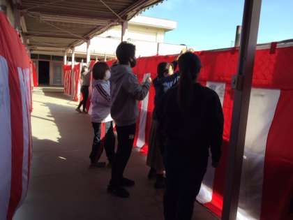 教職員と在校生が力を合わせて、卒業式に向けて準備をしています。