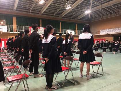 学年主任の工藤先生の指揮での「ふるさと」の合唱。