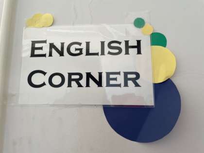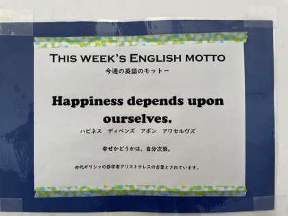 1年の掲示板には、近雌雄の英語のモットーが掲示されています。