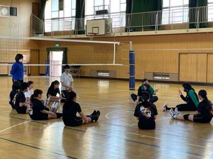 準備運動、一人ひとりの動きや動作のポイントなどを丁寧に教えていただき、バレー部の動きが一気に躍動的になっていました。
