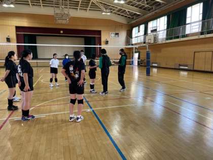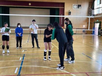 JTマーヴェラスの山本美沙さん、田中美咲さんがバレー部の実技指導をしてくださいました。