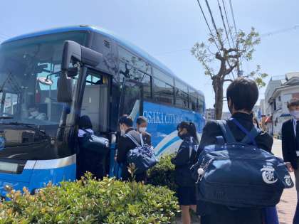 春を感じる晴天の中、2年生は、貸し切りバスを利用して、大阪四季劇場へ行きました。