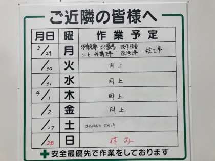 今週の工事予定 3月29日(月)