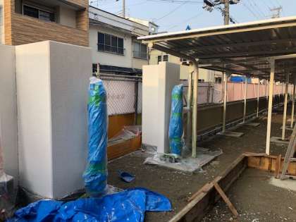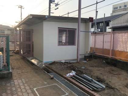 通用門とごみ置き場は、完成間近です。
