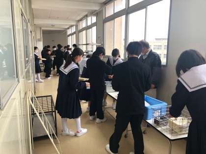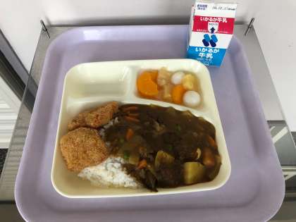 今日は、生徒たちにとっての人気メニューのカツカレーライスでした。フルーツの白玉も美味しくいただきました。