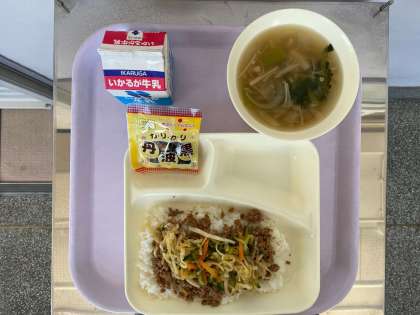 ビビンバ、トック いり黒豆、ご飯、牛乳でした。