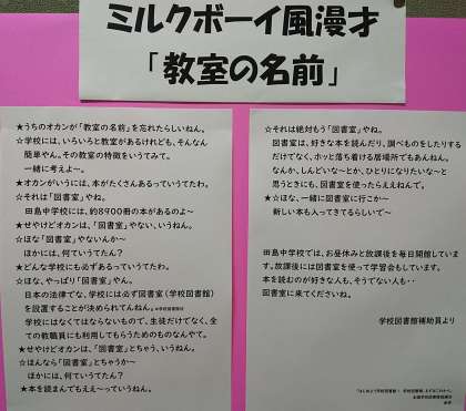 校内には、本や図書室の魅力を伝える掲示物(学校図書館補助員さんの手作りです)がたくさんあります。