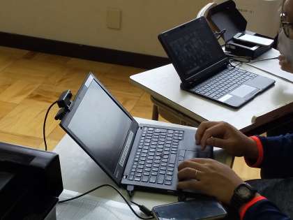 本日28日の16:00〜17:00は、その準備として「接続確認テスト」を行いました。写真は、それぞれの学年の先生が家庭からの参加をチェックしている様子です。