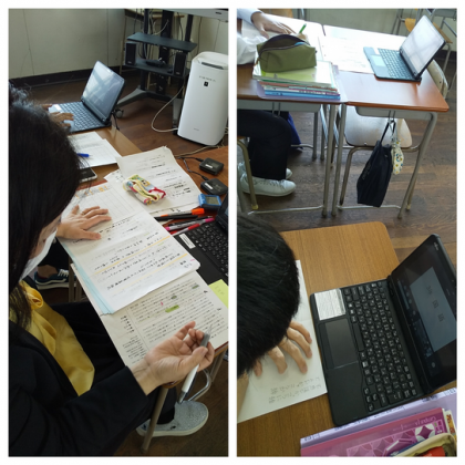 本日は、双方向オンライン授業を4時間行います。1時間目の様子です。