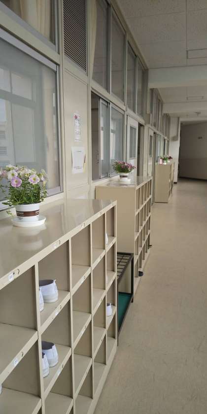 コロナ禍の中、制限された学校生活が長くなっていますが、少しでも前向きに頑張れるようにお花を置きました。